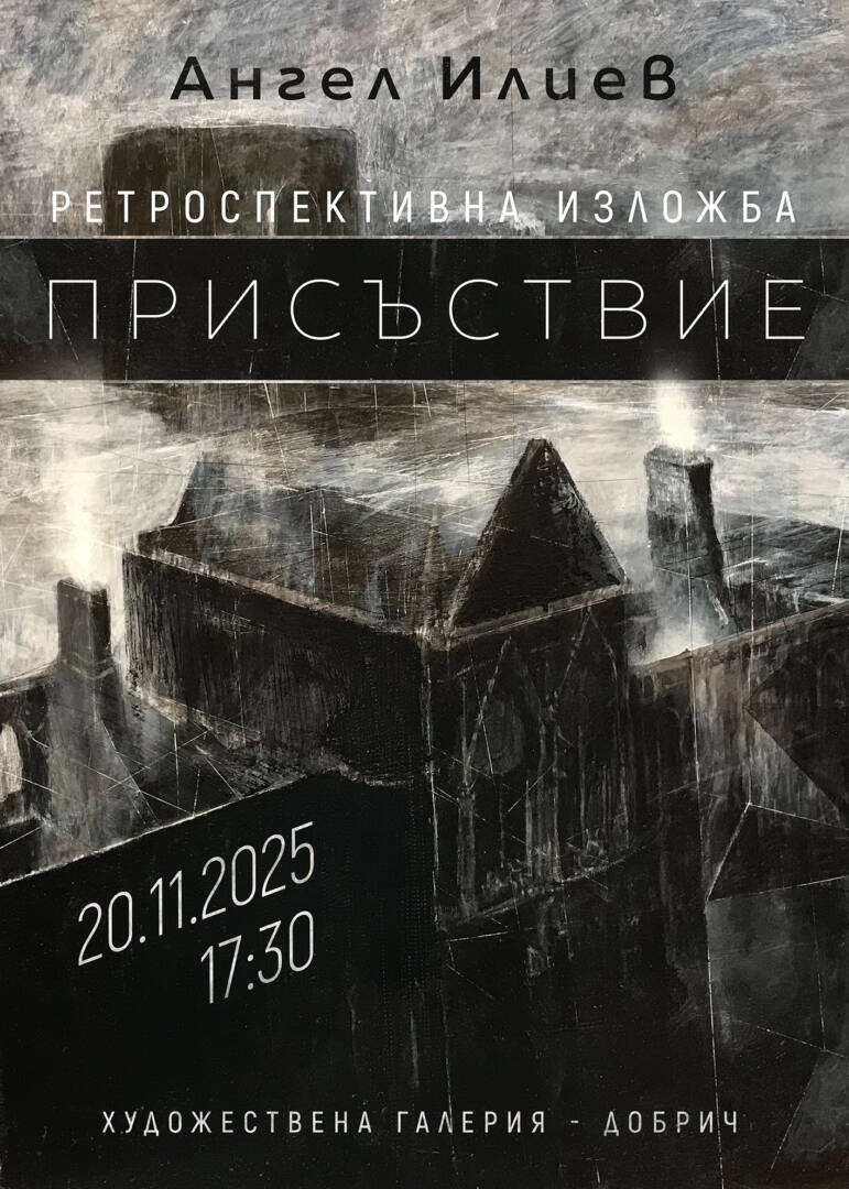 На 20 ноември 2025 г. (четвъртък) от 17:30 ч. в Художествена галерия – Добрич се открива ретроспективната изложба „Присъствие“ на Ангел Илиев. Роден в София