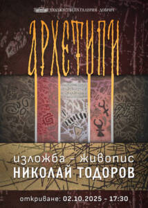On October 2, 2025 (Thursday) at 17:30 in Dobrich Art Galleryich opens the “Archetypes” painting exhibition by Nikolay Todorov. Nikolay Todorov was born on October