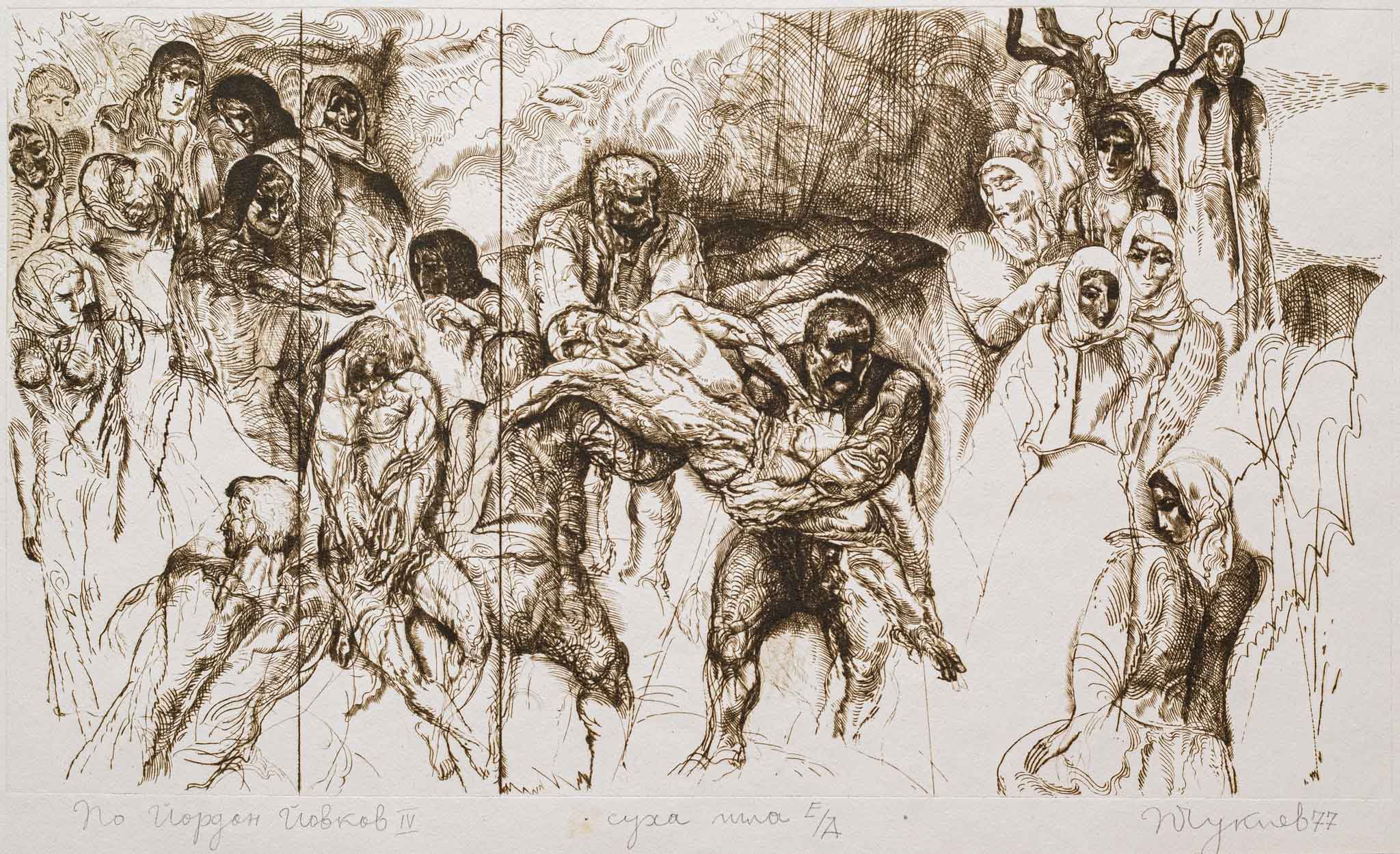 Автор: Петър Чуклев Произведение: По Йордан Йовков IV Техника: суха игла Автор: Петър Чуклев (1936 – 2024) Роден на 23 март 1936 г. в София. През 1960 г. завършва…